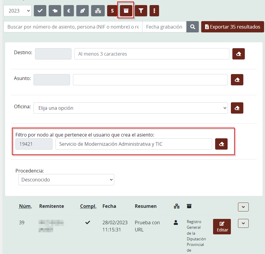 El filtro de registros sin enviar ahora también tendrá en cuenta los SERIA y SENIA que vengan de otras entidades.